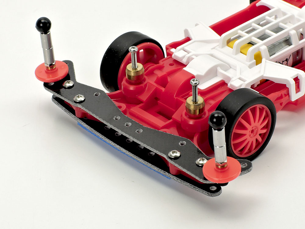【 基本スペック 】 ●完成時の全長155mm、全幅104mm、全高42mm ●ダブルシャフトモーターつき ●ギヤ比=3.7:1 ●ボディ=ABS樹脂製(スモーク) ●シャーシ本体=ABS樹脂製(レッド)、Aパーツ=ABS樹脂製(ホワイト) ●ホイール=フィンホイール(レッド) ●タイヤ=スーパーハード小径ローハイトタイヤ(ブラック) ●メタリック調の専用ステッカーつき ●接着材を使わずはめ込みとビス止めで組み立てられます